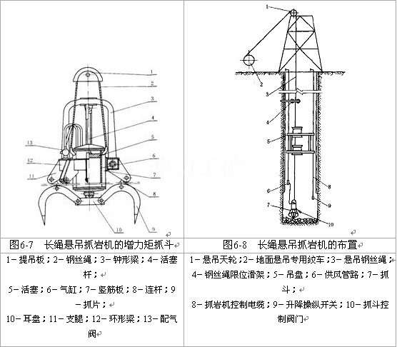 為了安全,地面可增設(shè)鑿井絞車,以便對(duì)抓巖機(jī)進(jìn)行輔助懸吊,通常可與傘鉆適用一臺(tái)懸吊絞車。