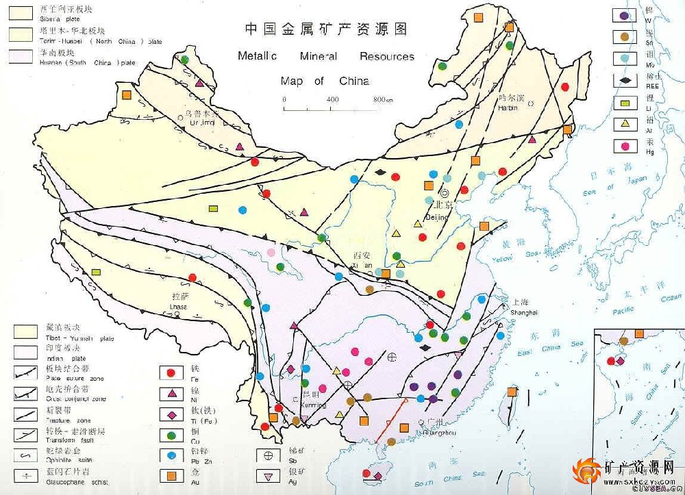 中國已探明儲量的金屬礦產有54種,即:鐵礦、錳礦、鉻礦、鈦礦、釩礦、銅礦、鉛礦、鋅礦、鋁土礦、鎂礦、鎳礦、鈷礦、鎢礦、錫礦、鉍礦、鉬礦、汞礦、銻礦、鉑族金屬(鉑礦、鈀礦、銥礦、銠礦、鋨礦、釕礦)、金礦、銀礦、鈮礦、鉭礦、鈹礦、鋰礦、鋯礦、鍶礦、銣礦、銫礦、稀土元素(釔礦、釓礦、鋱礦、鏑礦、鈰礦、鑭礦、鐠礦、釹礦、釤礦、銪礦)、鍺礦、鎵礦、銦礦、鉈礦、鉿礦、錸礦、鎘礦、鈧礦、硒礦、蹄礦。現就主要金屬礦產分布簡介如下。