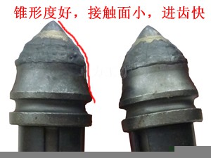 優勢三: 胎體選用經過熱處理高強度合金鋼, 保持高強韌形和高耐磨性 | 優勢四: 齒尖帶有錐形度, 接觸面小,進齒快, 有效提高鉆進速度。 |